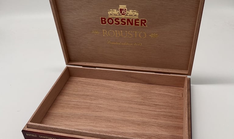 Elegante caixa de charutos de madeira projetada com tamanhos e acabamentos personalizados, perfeita para exibição no varejo e para acrescentar valor à sua marca.