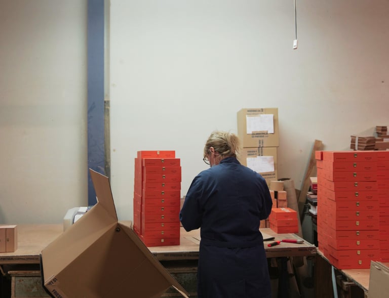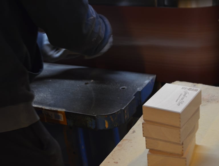 Do design à entrega, cada caixa de madeira é feita com cuidado e precisão.